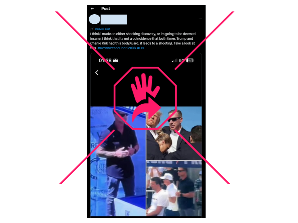 “Creo que no es una coincidencia que ambas veces que Trump y Charlie Kirk tuvieron a este guardaespaldas haya ocurrido un tiroteo…”, se lee en una publicación de X.