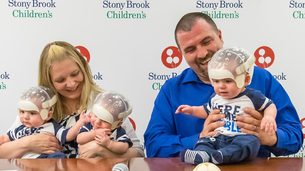 Conoce a los trillizos de NYC que fueron diagnosticados con una rara malformación craneal y hoy se recuperan