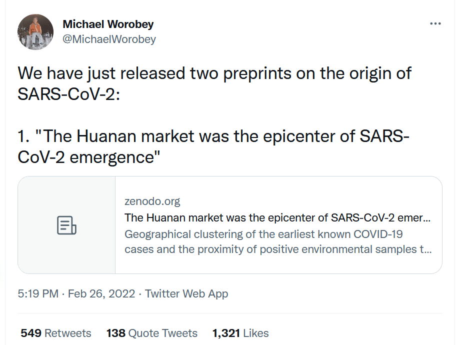 La investigación sugiere que es muy probable que el virus se extendiera a las personas que trabajaban o compraban en el mercado. Los investigadores señalan que no encontraron pruebas para una hipótesis alternativa de que el coronavirus se escapó de un laboratorio en Wuhan.