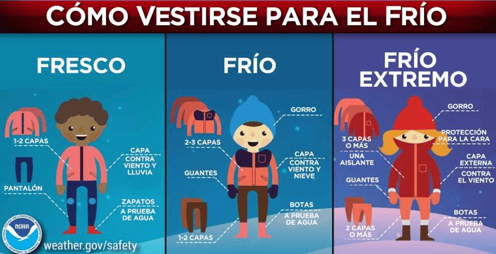 Los vientos gélidos que se esperan a partir de hoy pueden congelar la piel en 10 minutos, según alertó el Servicio Nacional de Meteorología. Lo ideal es abastecerse bien de todo lo necesario para quedarse en casa hasta que amaine el temporal. Si no te queda más remedio que salir, minimiza el tiempo fuera y extrema las precauciones contra la hipotermia. A continuación despejamos algunas dudas: