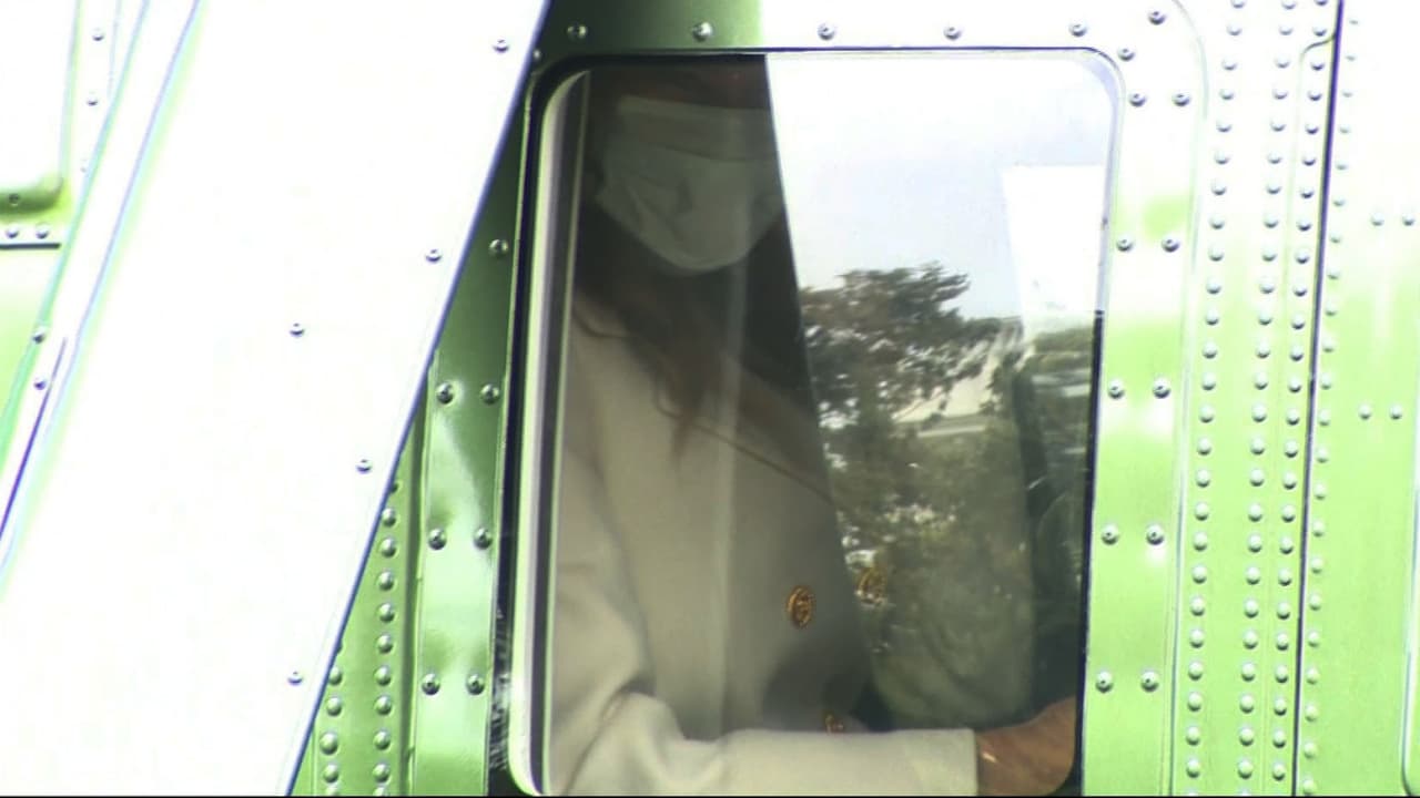 Graban a Melania Trump con mascarilla en el Marine One, aunque se niega a usarla en público