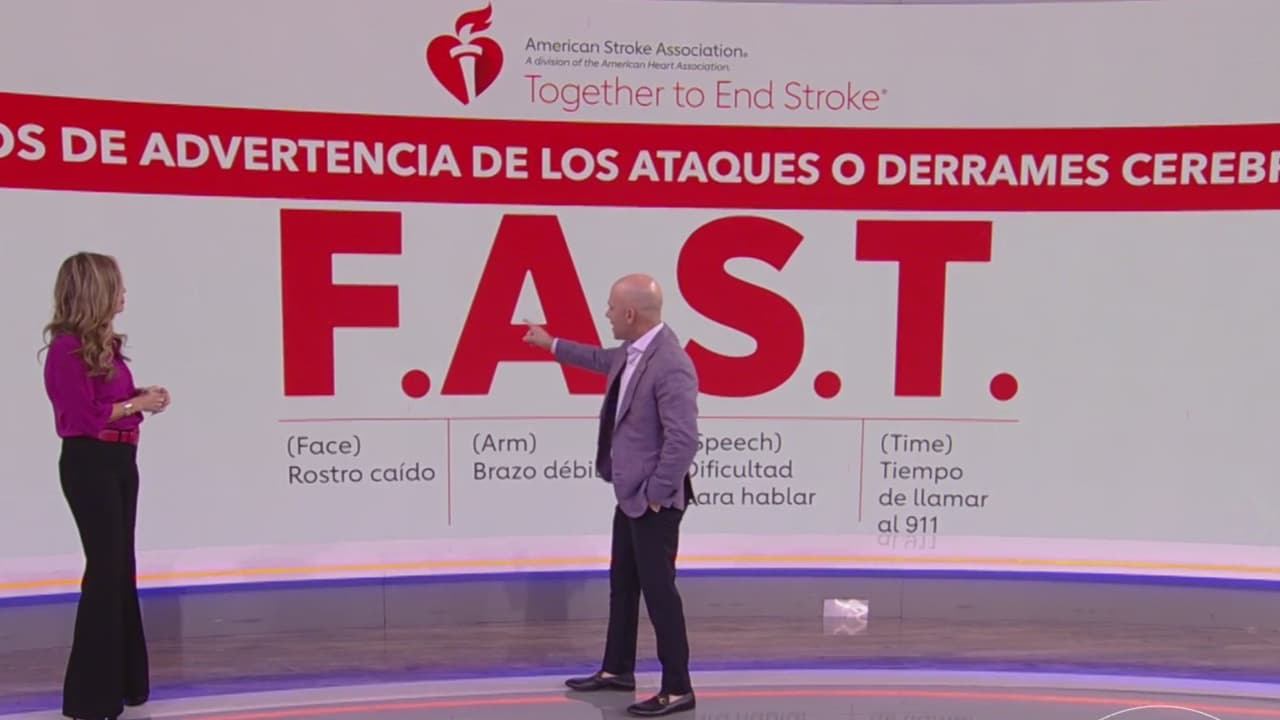 Los expertos en accidentes cerebrovasculares han acuñado un acrónimo para ayudarlo a recordar: FAST. F de face (cara), A de arm (brazo), S de speech (habla) y T de time (tiempo).