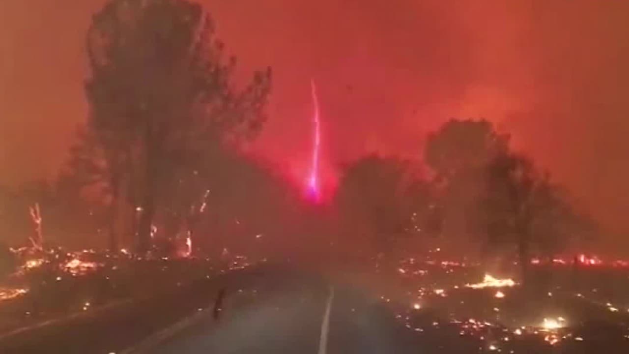 El incendio Camp Fire ha consumido más de 18,000 acres en el condado de Butte de California y sus fuertes vientos han dado pie para que se formen estas peligrosas columnas de fuego que desde la distancia los testigos pudieron grabar.