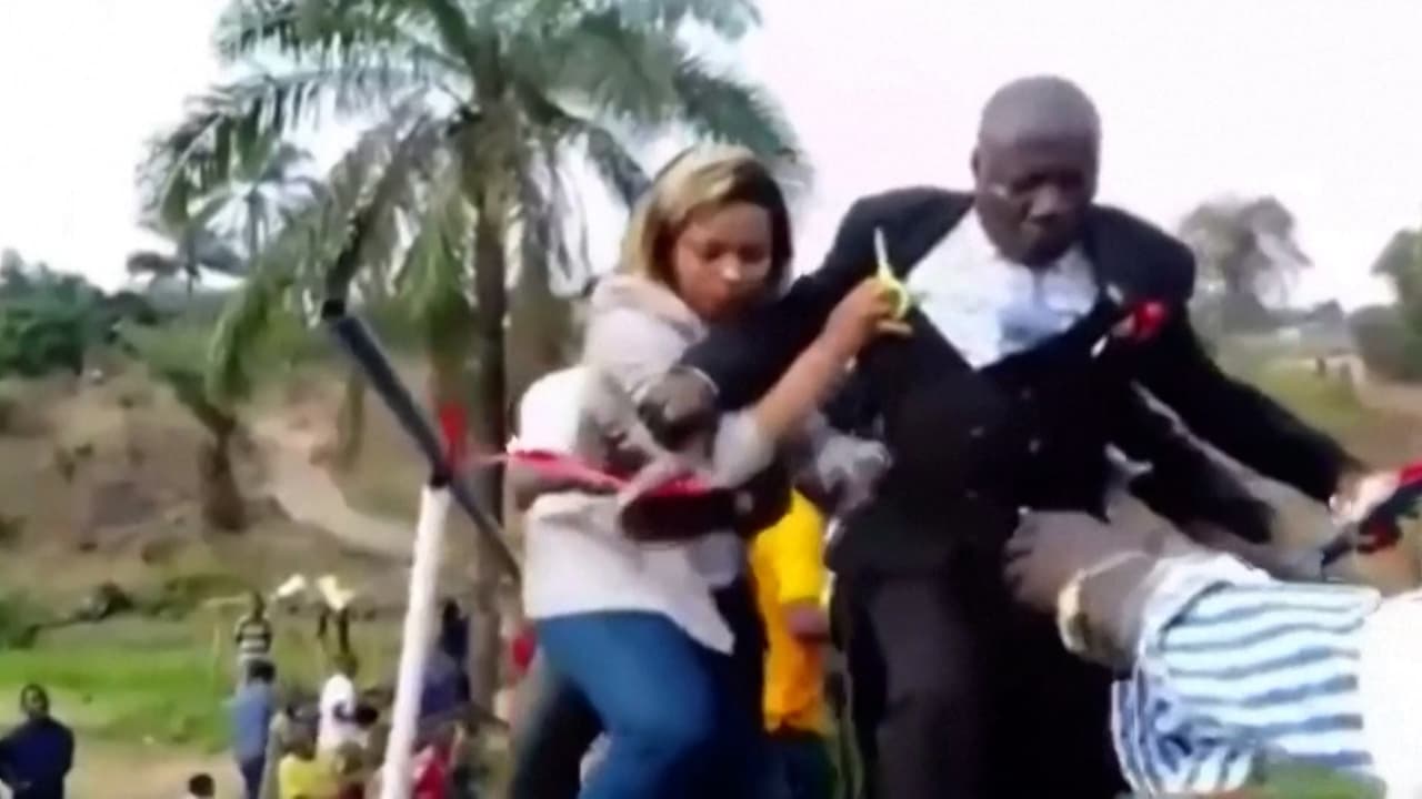 Sucedió en la República Democrática del Congo, en África, donde los dignatarios en Kinshasa celebraban la inauguración de un puente peatonal y al cortar la cinta se derrumbó la estructura que cayó en el arroyo.
