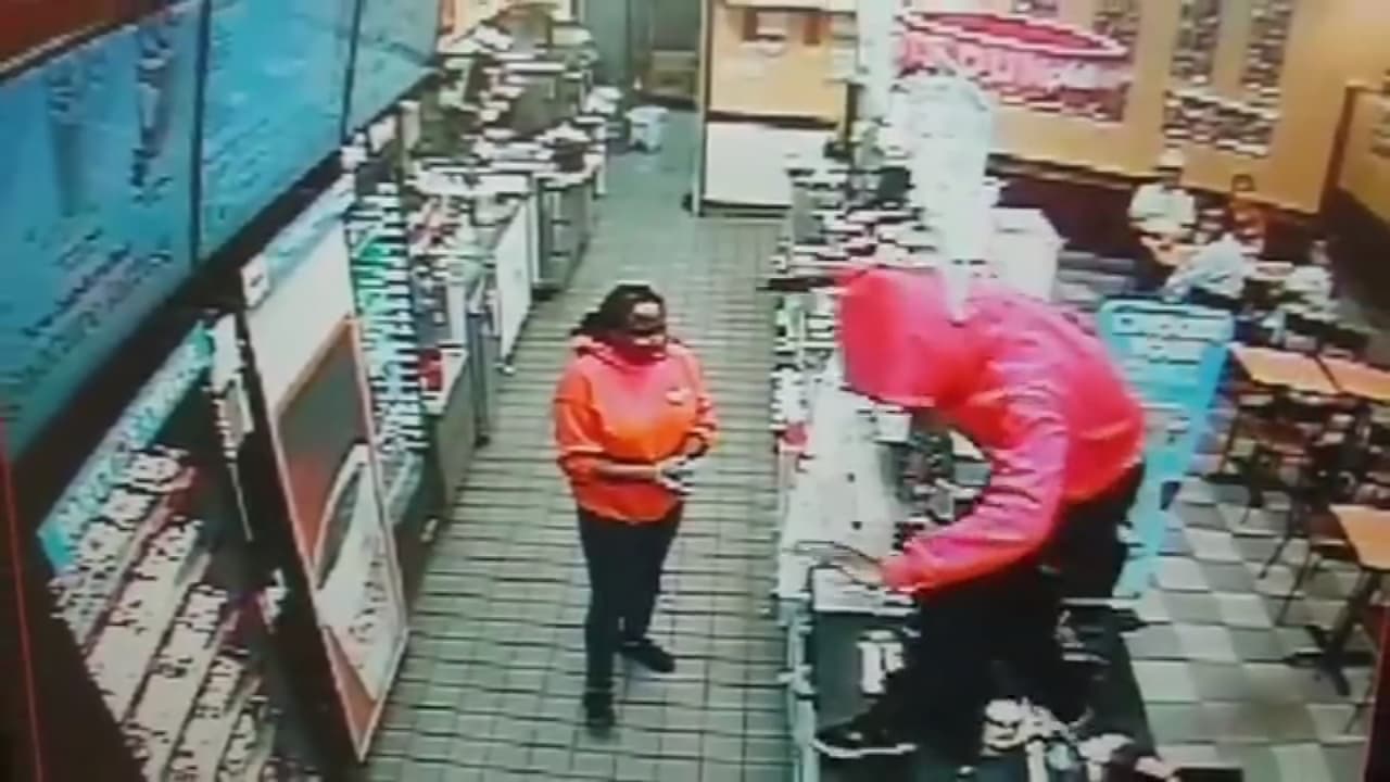 Las autoridades creen que el sospechoso estaba haciendo una transmisión en vivo con su celular al mismo tiempo que cometía el robo de la dona.