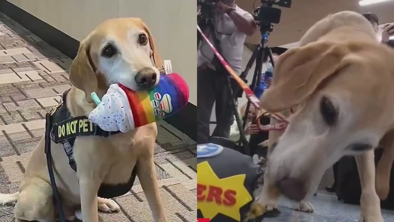 Kebbers, el agente canino más viejo de la Administración de Seguridad en el Transporte (TSA), se desempeñaba como detector de explosivos en un aeropuerto de Minnesota y, tras 10 años de servicio, compañeros celebraron su retiro con pasteles para perros en forma de bombas. Además, la festividad finalizó con una lluvia de regalos de peluche en agradecimiento por su trabajo.