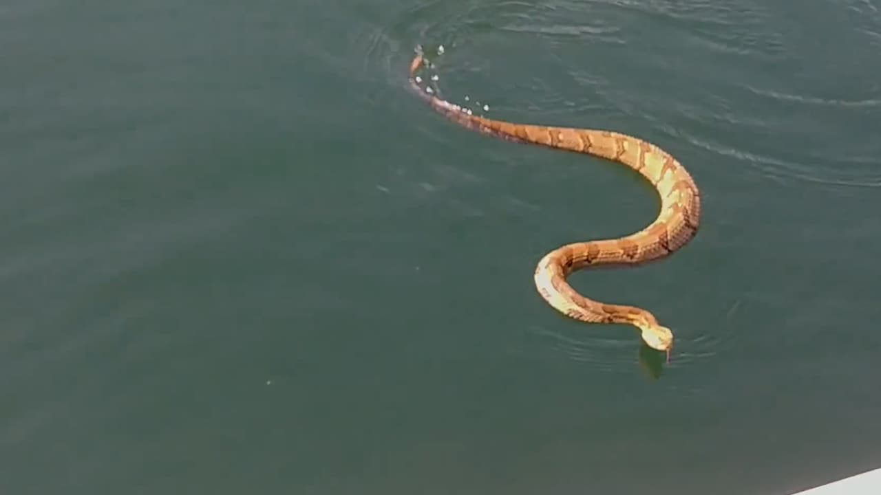Una familia disfrutaba una tarde en Carolina del Norte cuando una serpiente cascabel atacó al barco. La culebra se logró subir a la plataforma del barco por un par de segundos, pero decidió volver nadando a la costa.