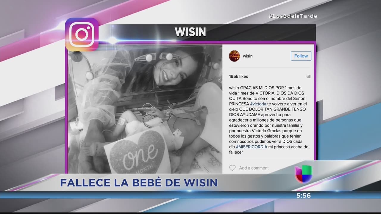 El reguetonero Wisin anunció este viernes el fallecimiento de Victoria, la bebé de un mes que había nació con el desorden genético de Trisomía 13. Rendimos un homenaje y nos solidarizamos con la pérdida de la familia.