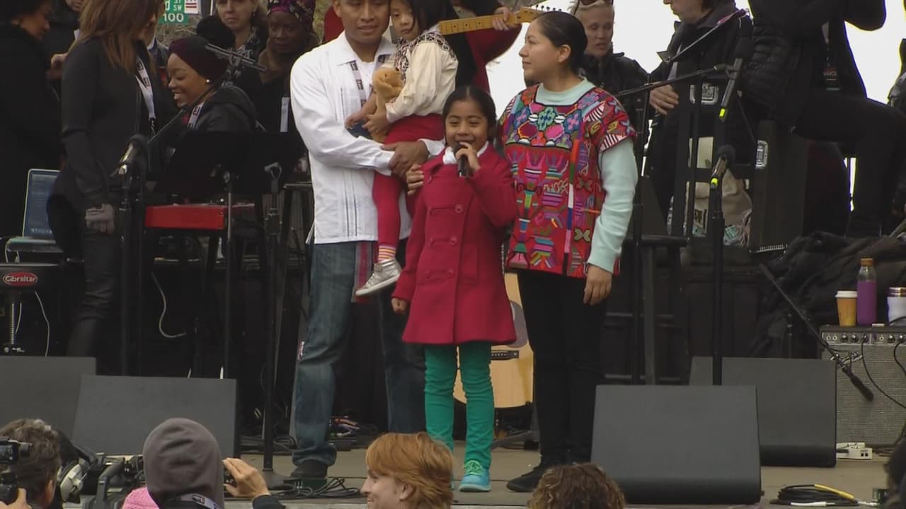 La pequeña activista le pidió a los asistentes de la Marcha de las Mujeres que sigan haciendo una cadena de amor para proteger a sus familias.