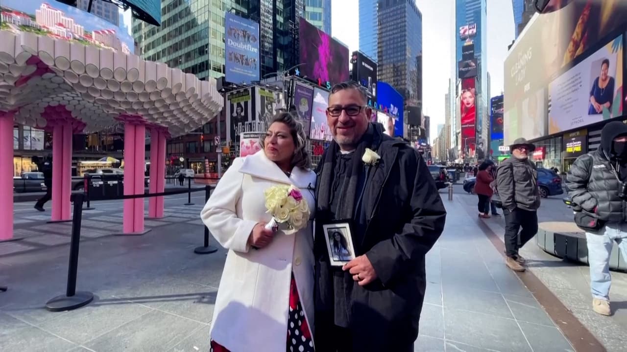 Monica Fonseca y Moses Verbana se casaron en pleno día de San Valentín en Times Square, Nueva York. A pesar de las bajas temperaturas, decidieron celebrar su boda en ese lugar para honrar y recordar a su hija Sydney, que se suicidó en agosto de 2021. Más noticias