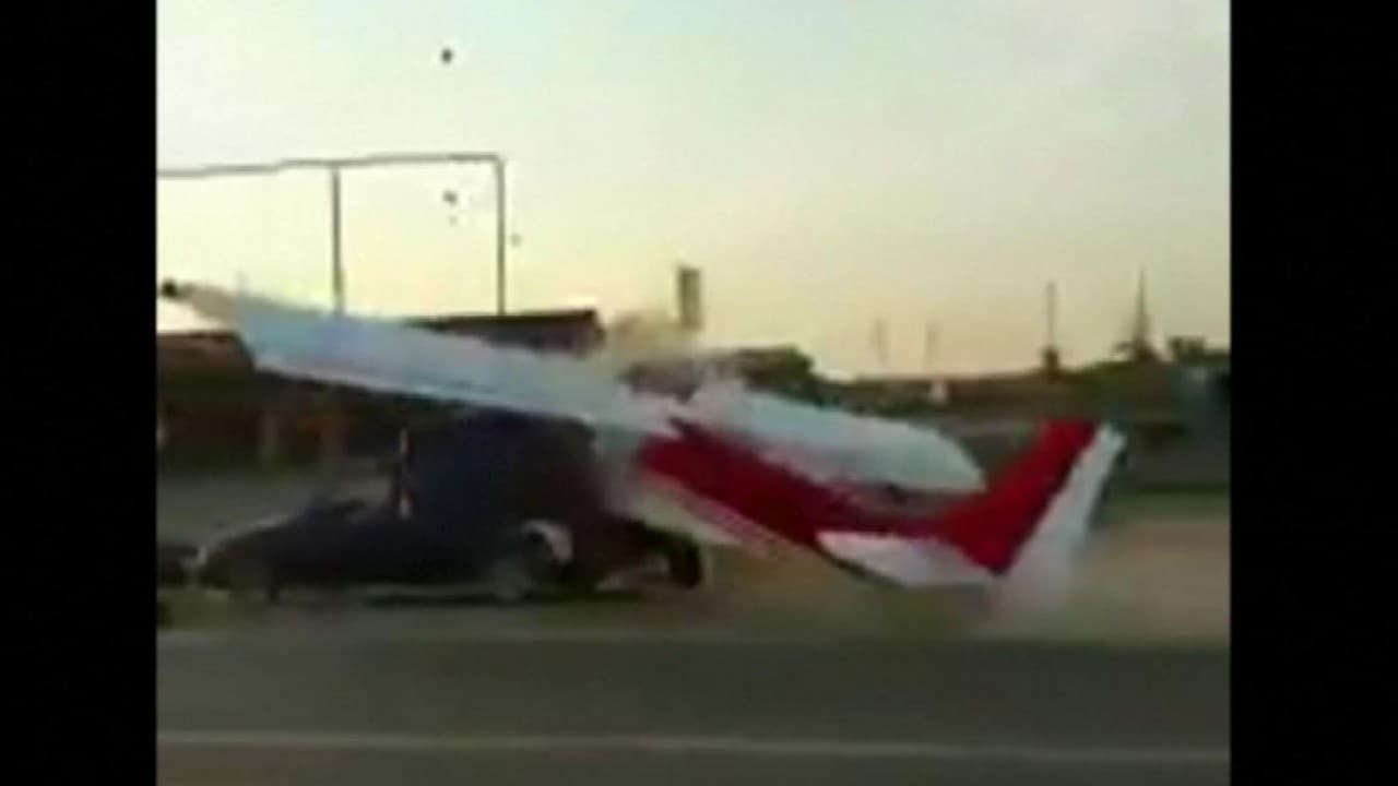Avioneta intenta despegar en una autopista y termina chocando contra una furgoneta