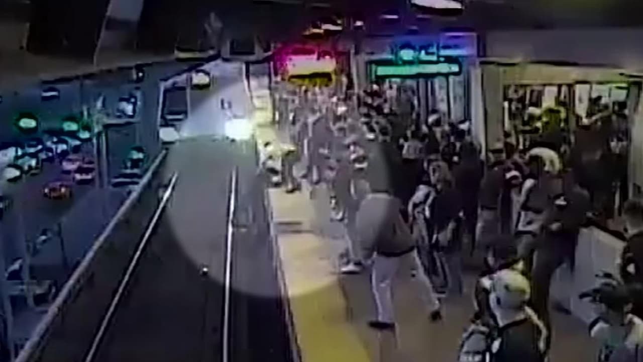 En video: El veloz rescate a un hombre que cayó a las vías del tren justo cuando llegaba el tren