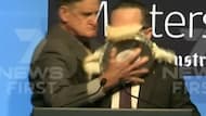 Un hombre le lanzó un pastel a la cara al CEO de la aerolínea Qantas, aunque este se lo tomó con humor.