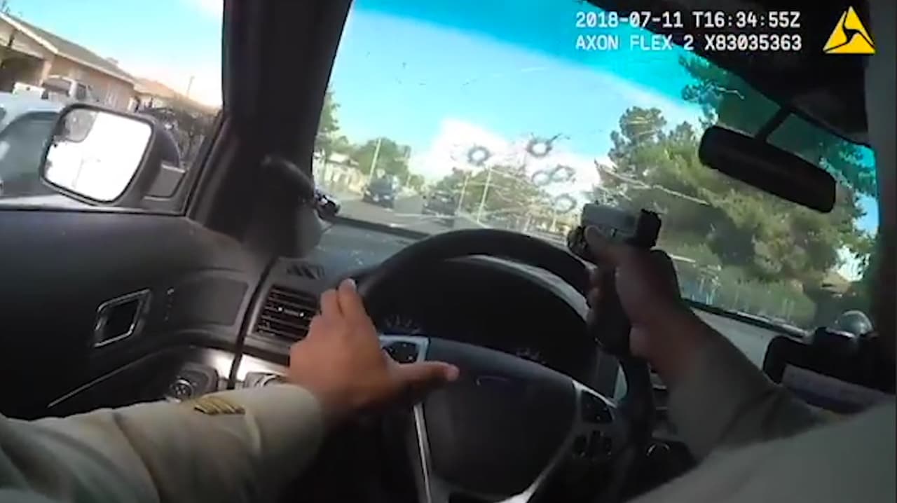 Policía dispara a través de su propio parabrisas en medio de una persecución en Las Vegas