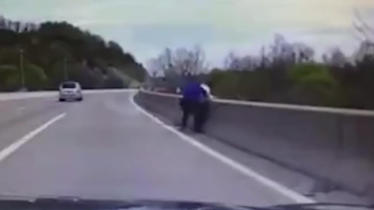 El sargento Greg Bogert agarró al individuo justo cuando se acercaba corriendo a la barrera de concreto de un puente en Riverdale, New Jersey.