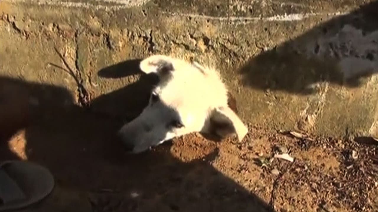 Los vecinos de un pueblo peruano liberaron al can después de que su cabeza quedara atrapada cuando buscaba comida.