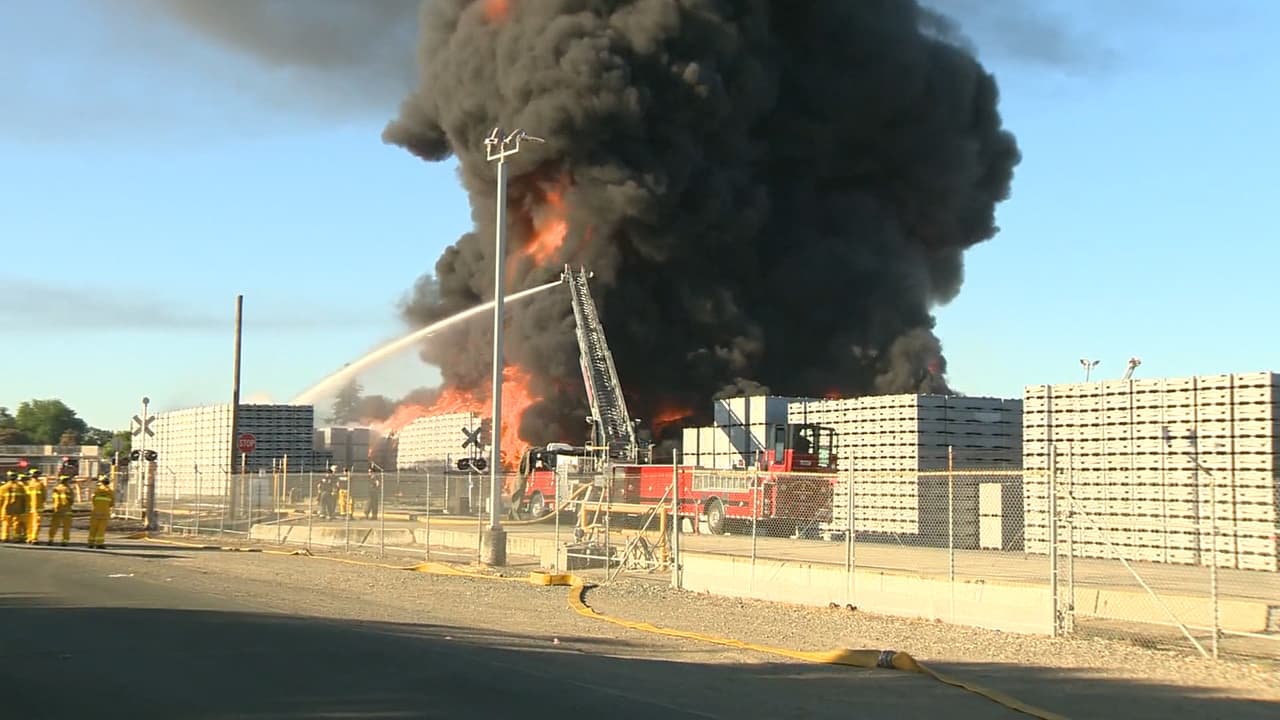 Se incendia en medio de la noche una empacadora de tomates en California