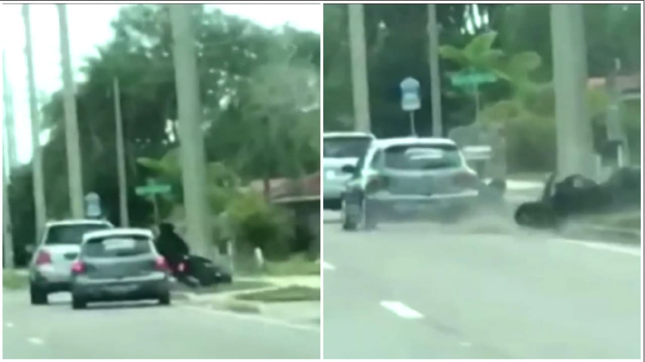 Un auto arremete contra un motociclista en Florida y queda captado en video