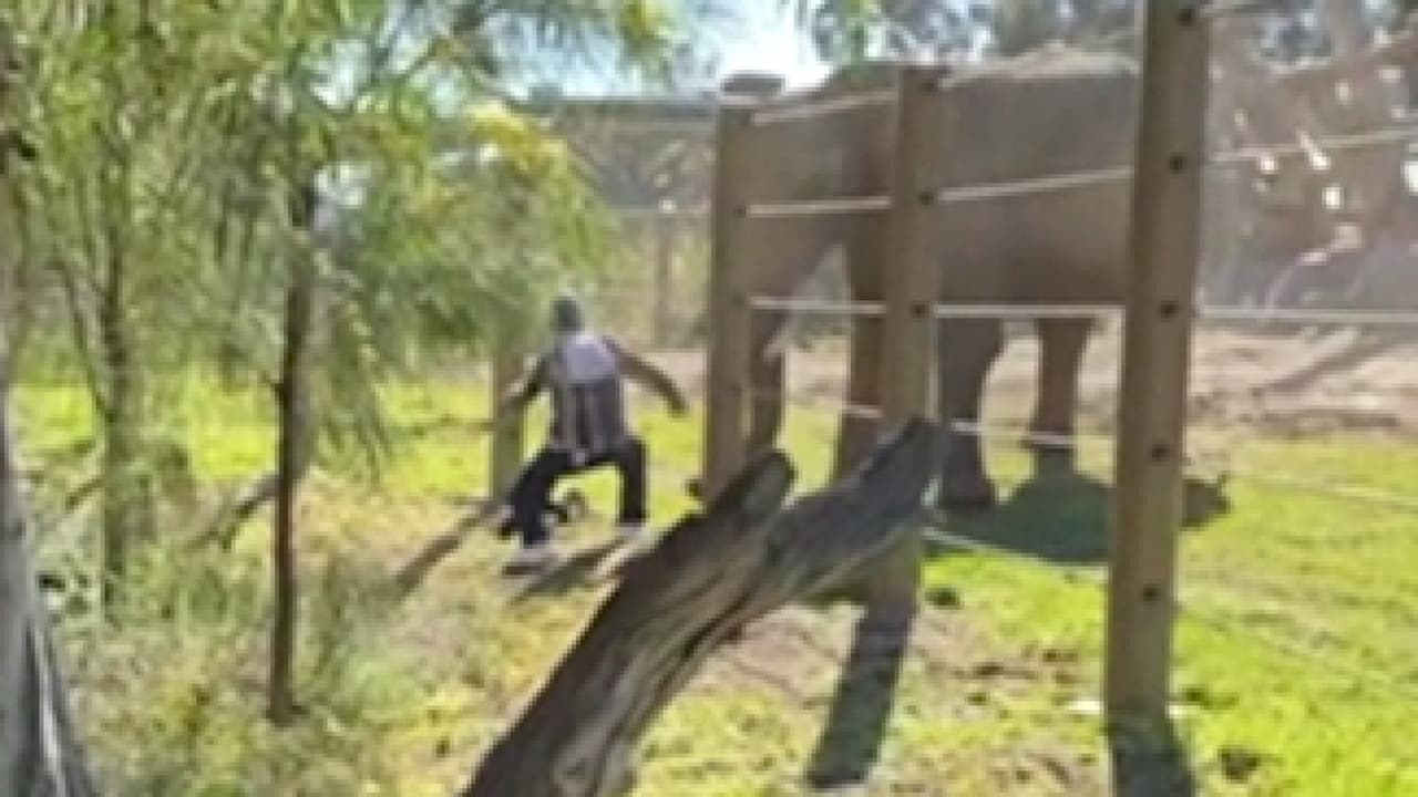 Un hombre se mete la jaula de un elefante cargando su hija de dos años y escapa (por los pelos) con vida