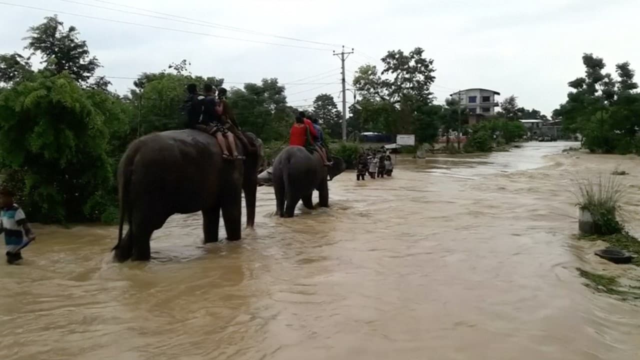 Una inundación en Nepal arrasó con decenas de hoteles y casas a lo largo de toda la costa del río Rapti. La fuerza y altura de estos animales fueron de mucha ayuda.