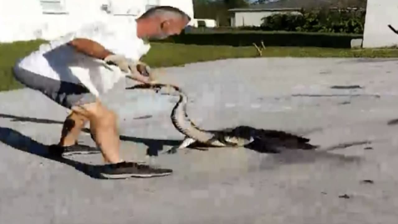 Cuando Auzjia Dickerson vio que un caimán se paseaba por la cochera de su casa no dudó en llamar a su vecino, quien es entrenador de perros y cuenta con herramientas. Sin embargo, las cosas no salieron bien y el animal terminó por prensarse de su brazo.