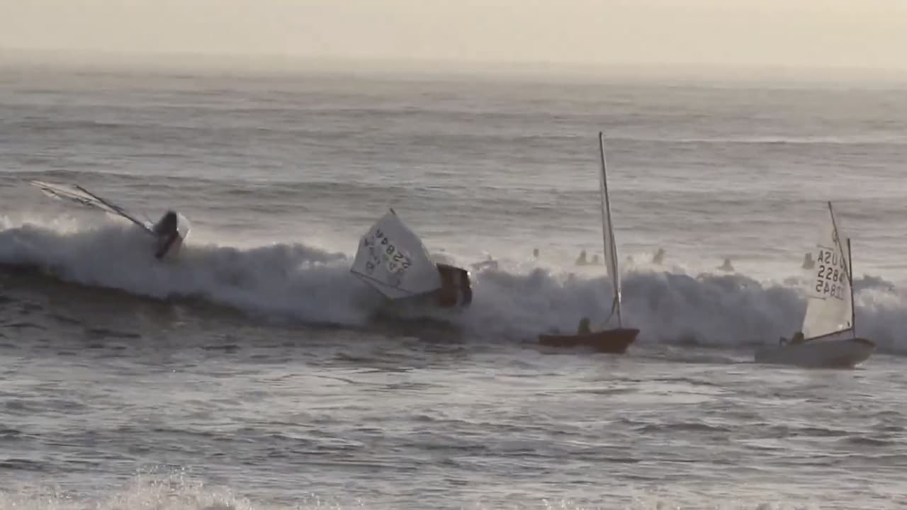 Un grupo de niños, integrantes de un club de vela juvenil, regresaba de sus lecciones de navegación cuando fuertes olas voltearon sus embarcaciones cerca de la costa, en Santa Cruz, California. Aunque varios surfistas que se encontraban en la proximidad acudieron en su ayuda, todos los jóvenes lograron salir ilesos del incidente.