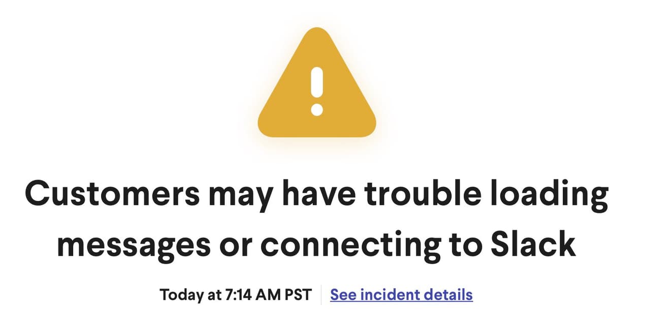 La compañía inicialmente calificó el problema del servicio como un "incidente" en un comunicado en su sitio web, luego lo actualizó a un corte de servicio una hora después. "Los clientes pueden tener problemas para cargar canales o conectarse a Slack en este momento", dice el comunicado. “Nuestro equipo está investigando y daremos seguimiento con más información tan pronto como la tengamos. Pedimos disculpas por cualquier interrupción causada ".