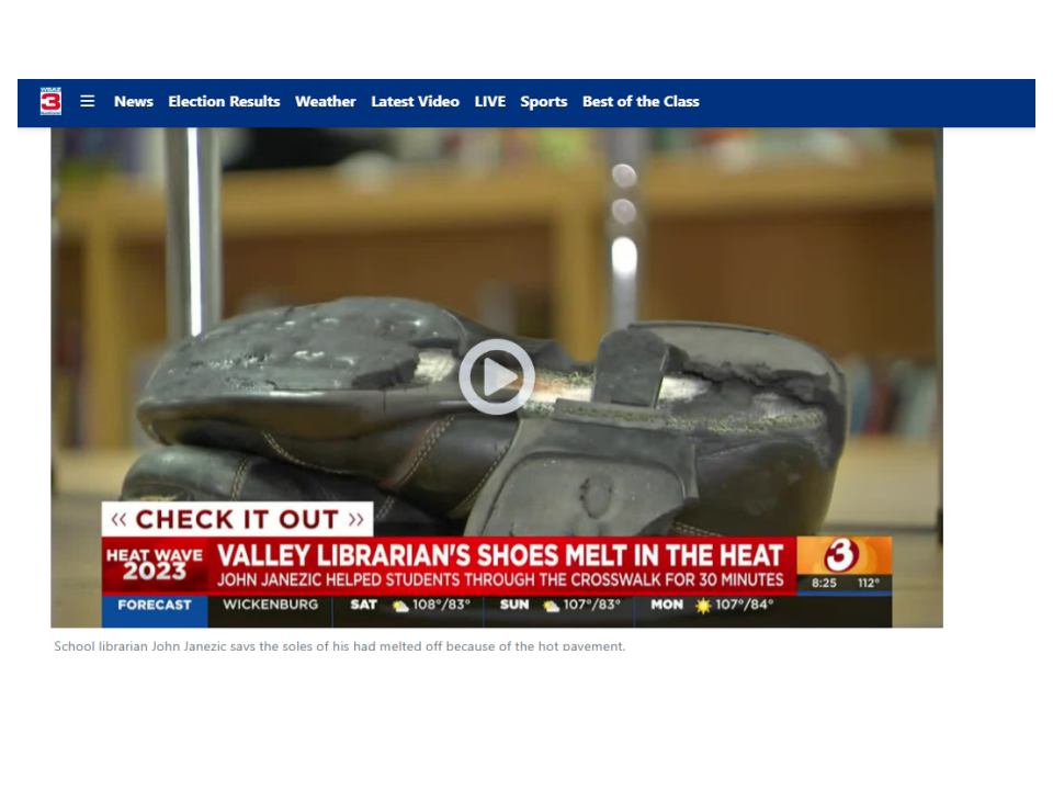 Con las palabras clave en inglés melting shoes Arizona 2023 (zapatos derritiéndose Arizona 2023), encontramos que en medios locales publicaron la noticia de que en julio de 2023 a un bibliotecario se le desprendió la suela del zapato por el calor en Chandler, Arizona, pero por la imagen vemos que no se trata del mismo caso que circula en Instagram. Los zapatos del hombre en Chandler se desprendieron a pedazos y el aspecto es diferente al pegajoso que muestra el video de Instagram.