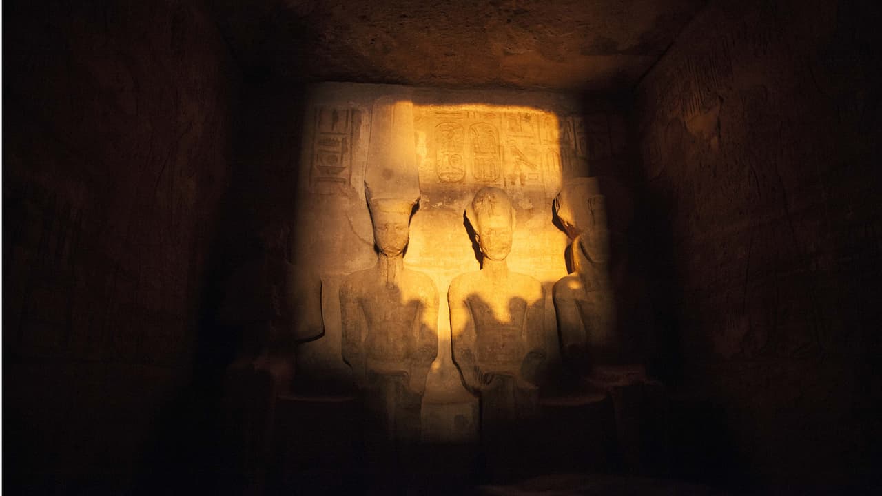 El fenómeno astronómico ilumina la estatua del faraón, y los dioses Amón y Ra. Dura aproximadamente 20 minutos.