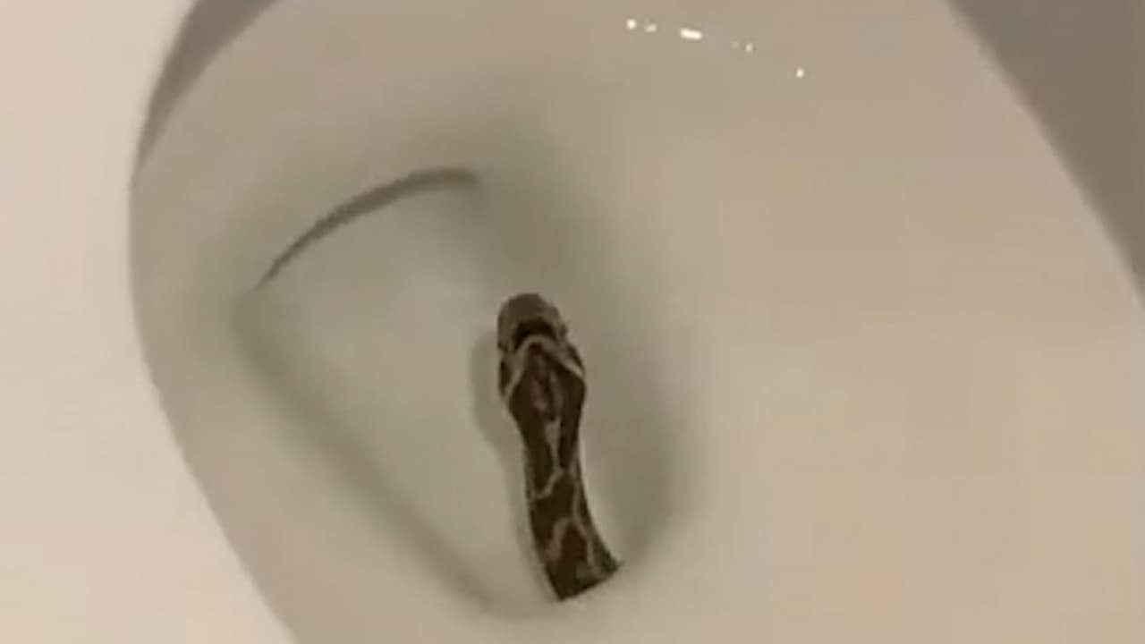 "Tenemos un visitante": el impresionante momento en que una serpiente se aparece en un inodoro