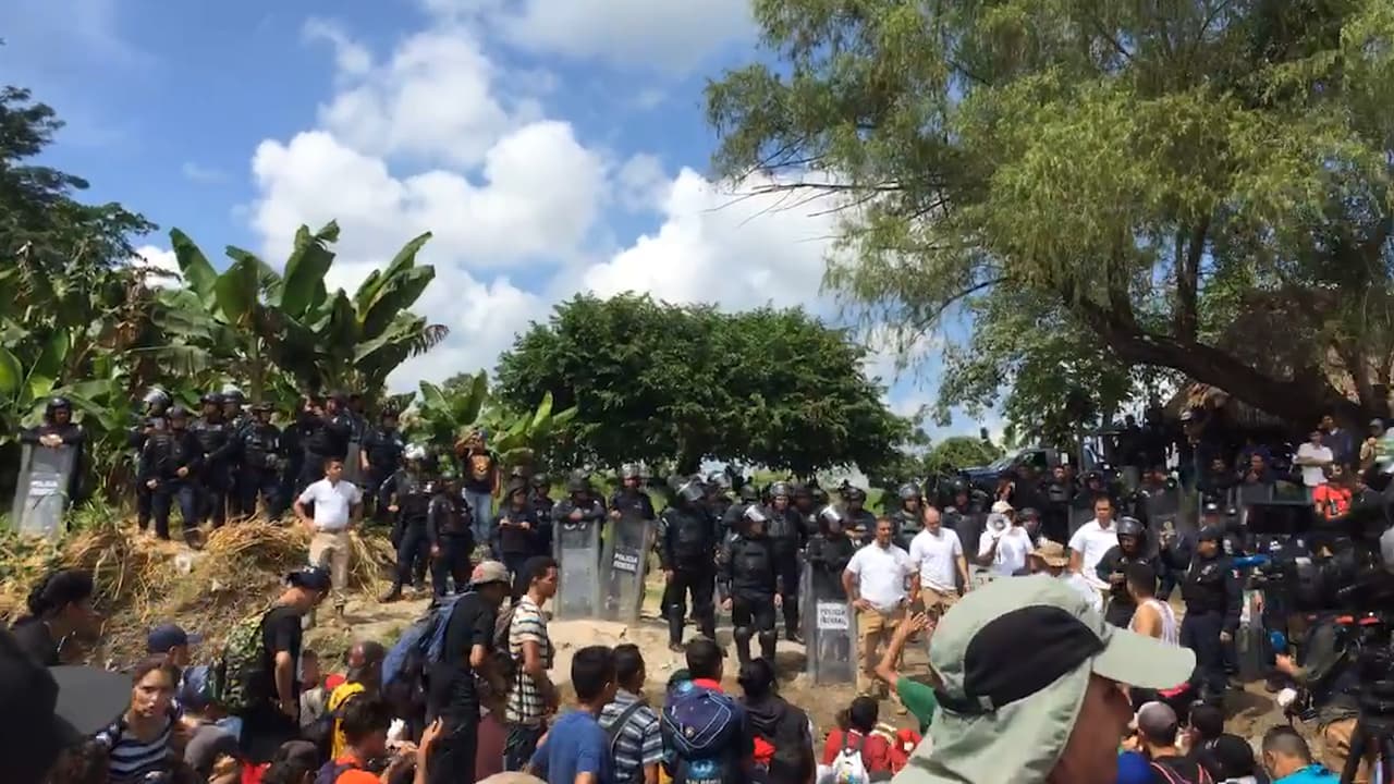 Tensión en la frontera: policías mexicanos impiden que la segunda caravana cruce por el río Suchiate