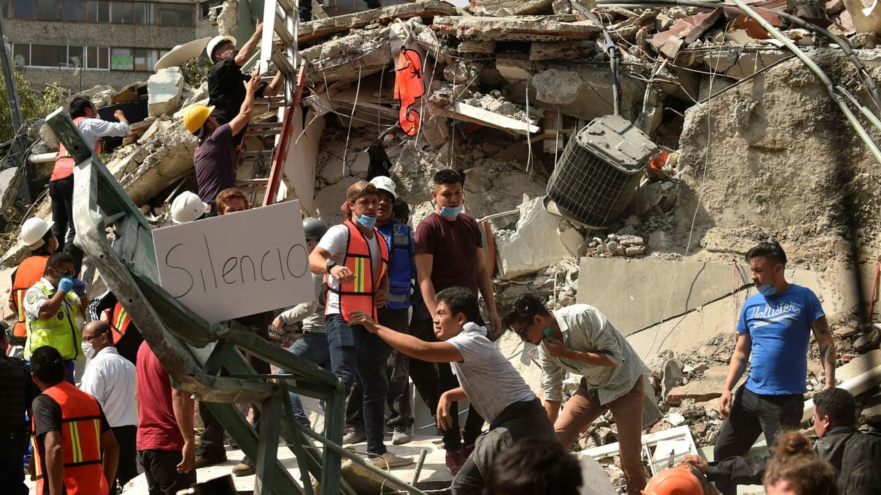 Voluntarios, médicos y militares se unieron a las labores de rescate en las calles de la capital, donde los rescatistas hacían pedidos de silencio para detectar pedidos de socorro de personas atrapadas que no podían verse a simple vista.