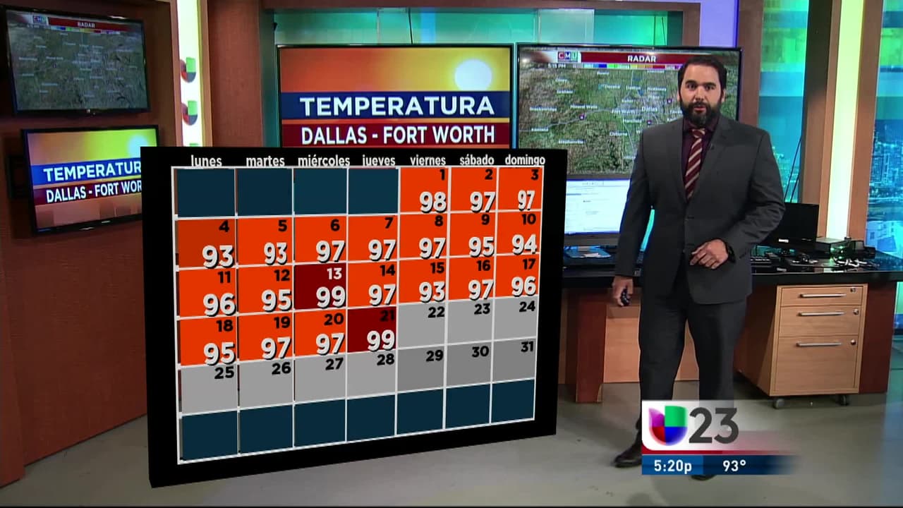 La sequía regresa a Texas tras unas cuantas semanas sin lluvia y con temperaturas excepcionalmente altas. Hoy hemos rozado los 100° y mañana la temperatura volverá a ser excepcionalmente alta arrancando así una ola de calor de 3 días. Meteorólogo Albert Martínez.