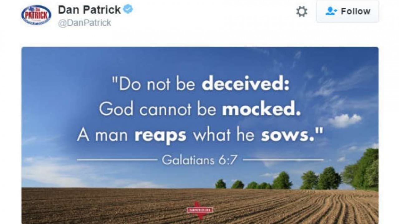En el mensaje de Dan Patrick decía: "No se dejen engañar: Dios no puede ser burlado. Un hombre cosecha lo que siembra”.