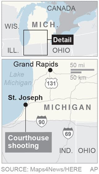 Según Bailey, la balacera comenzó a las 2:25pm (hora local) en el tercer piso de la corte en la ciudad de St. Joseph, en el condado de Berrien, donde 10 oficiales trabajaban este lunes.