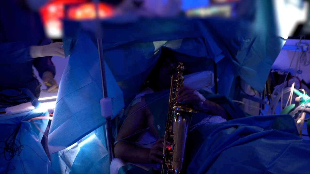 Imágenes compartidas por el hospital internacional Paideia en Italia muestran una cirugía cerebral durante la cual el paciente se mantuvo despierto. En ese tiempo, estuvo tocando el saxofón, lo que permitió a los médicos monitorear sus funciones neurológicas.