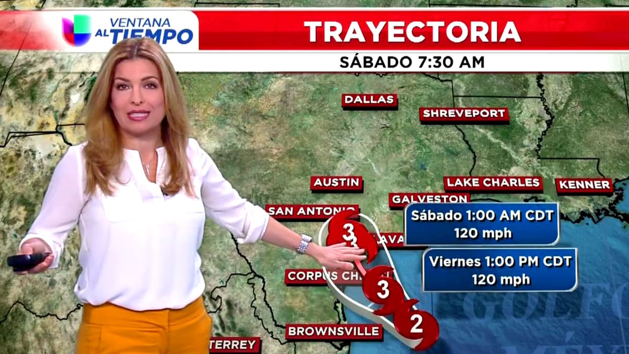 Paola Elorza, meteoróloga de Univision, asegura que el huracán sigue intensificándose y que en las próximas horas el nivel del mar podría subir en al menos 4 pies, por lo que Hervey alcanzaría la categoría 3 antes de impactar en tierra entre la noche del viernes y la madrugada del sábado.
