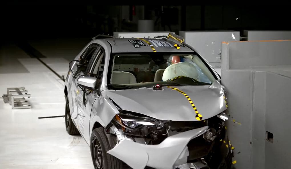El Toyota Corolla 2017 obtuvo las mayores puntuaciones durante las pruebas de colisiones realizadas por el IIHS (Insurance Institute for Highway Safety). En este video se aprecia el resultado de una colisión frontal media a 40 mph (64 km/h).