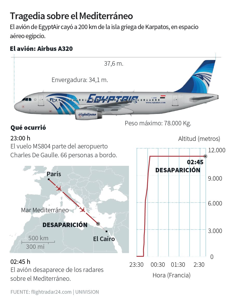 Aviones y barcos de la Armada egipcia localizaron objetos personales de los pasajeros y partes del fuselaje del avión 180 millas al norte de la ciudad de Alejandría.