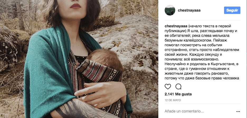Aliya Shagieva vive en el lejano país de Kyrgyzstan, pero su historia le ha dado la vuelta al mundo. Aunque muchos de sus más de 30 mil seguidores la condenaron por publicar una foto alimentando a su hijo, ella les ha respondido: “Este cuerpo que me ha sido entregado no es vulgar".