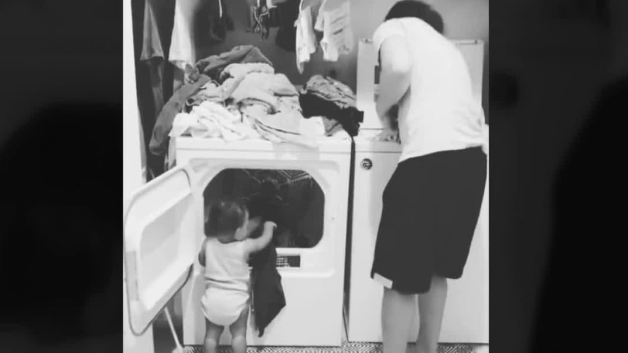 Este tierno video registra el momento en que el padre le pasa ropa a su hija y ella la va colocando en el lavarropas. El video fue publicado en Instagram a mediados de septiembre.