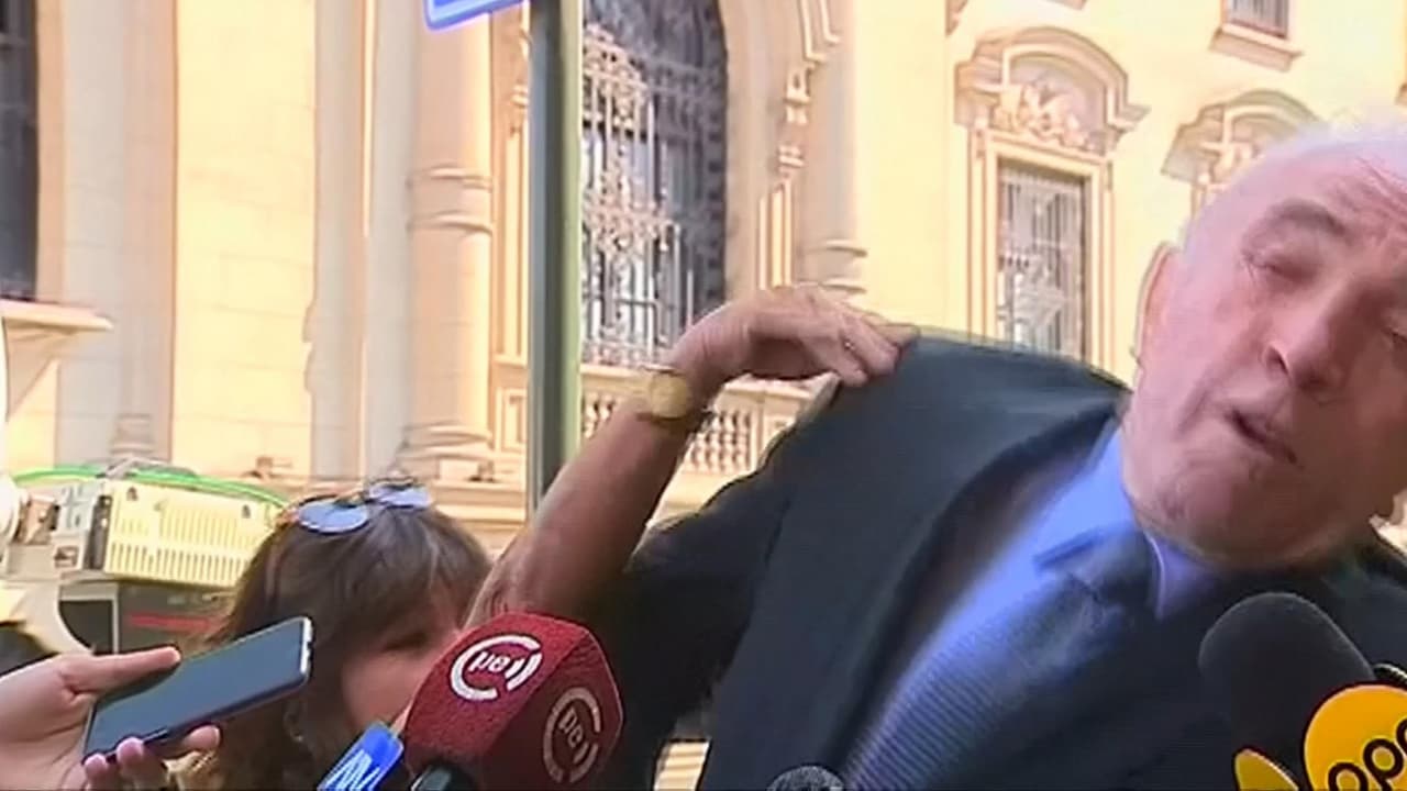 A su salida de una reunión con el nuevo presidente de Perú, Martin Vizcarra, el congresista Guido Lombardi hablaba con periodistas cuando una mujer se acercó y lo atacó. No se conoce la razón ni si la agresora fue detenida.