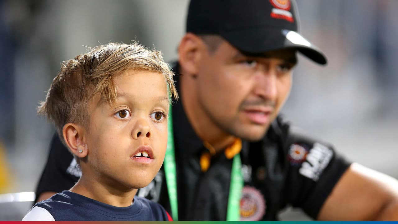 Este sábado el pequeño apareció con una enorme sonrisa junto a los jugadores de un equipo de la liga de rugby australiana mientras el estadio coreaba su nombre.