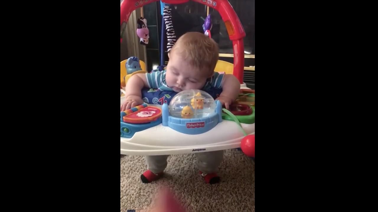 El bebé Tobías se encontró en un gran dilema para su edad: tratar de tomar la siesta pero al mismo tiempo brincar. ¿Cuál crees que eligió?