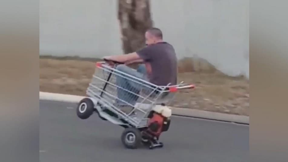 El videíto: Este hombre convirtió un carrito de supermercado en un divertido transporte