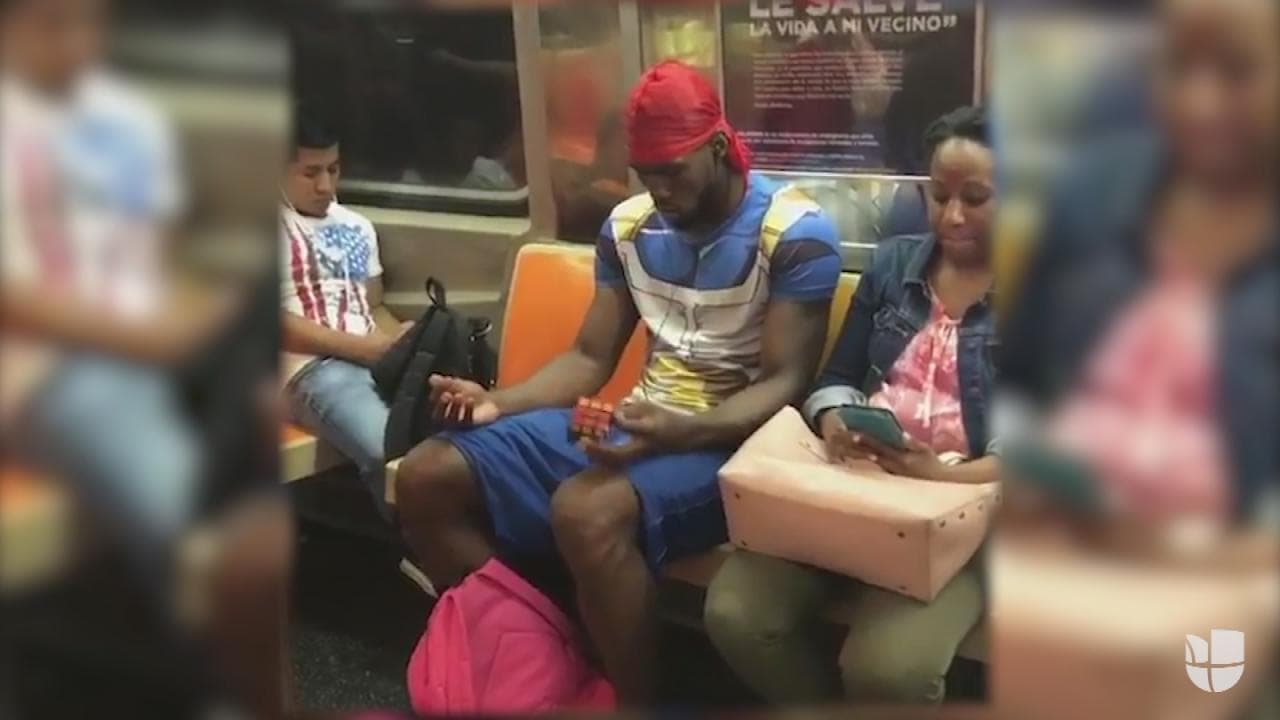 Algunos leen libros, otros escuchan música o ven los paisajes. Pero este pasajero del subterráneo de Nueva York resuelve cubos de Rubik sin mirarlos mientras espera su parada.