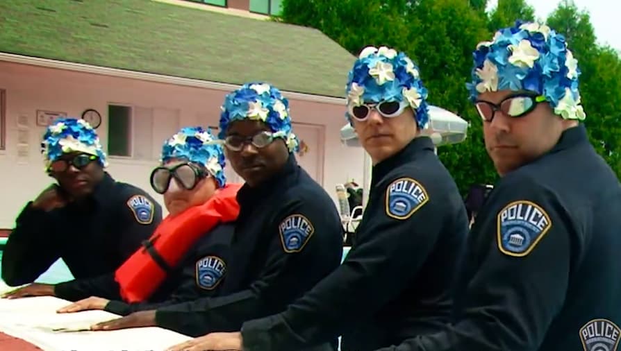 El videíto: Estos policías hacen nado sincronizado para promover una fiesta
