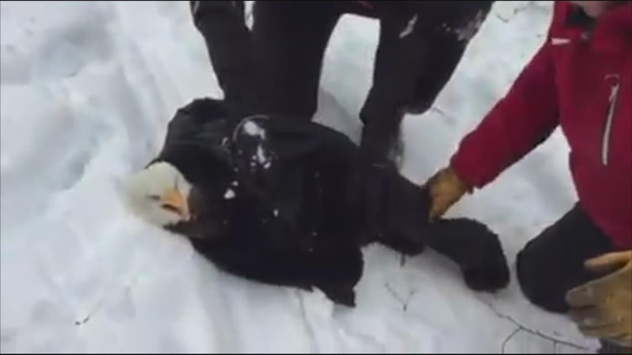El Videíto: fotógrafos liberan una águila calva que cayó en una trampa