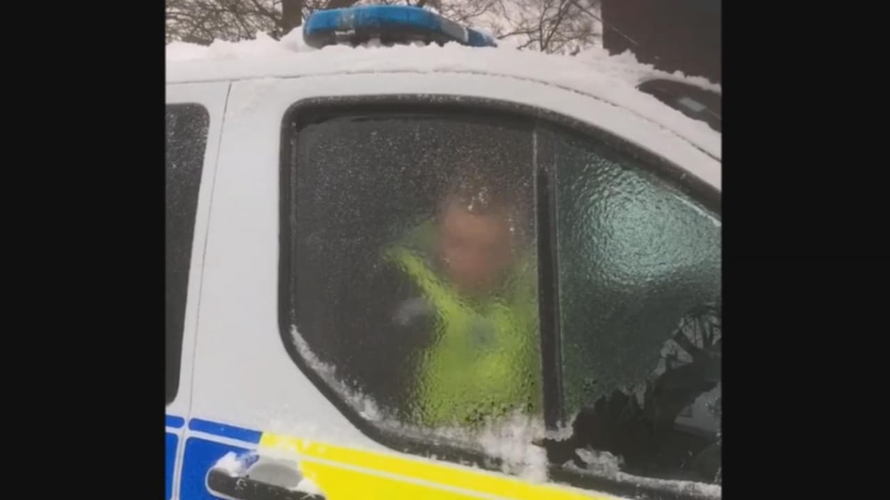 El videíto: Mira cómo de un solo cabezazo este policía logra sacudir el hielo de su patrulla
