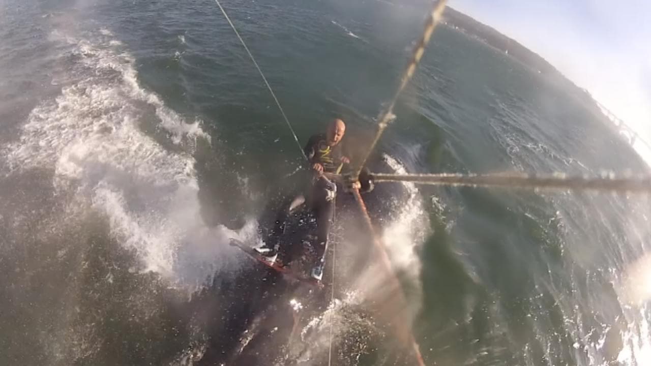 Andrei Grigoriev, de 36 años, quedó sorprendido al ver que el animal salió del agua cuando hacía kitesurfing en la bahía de San Francisco.